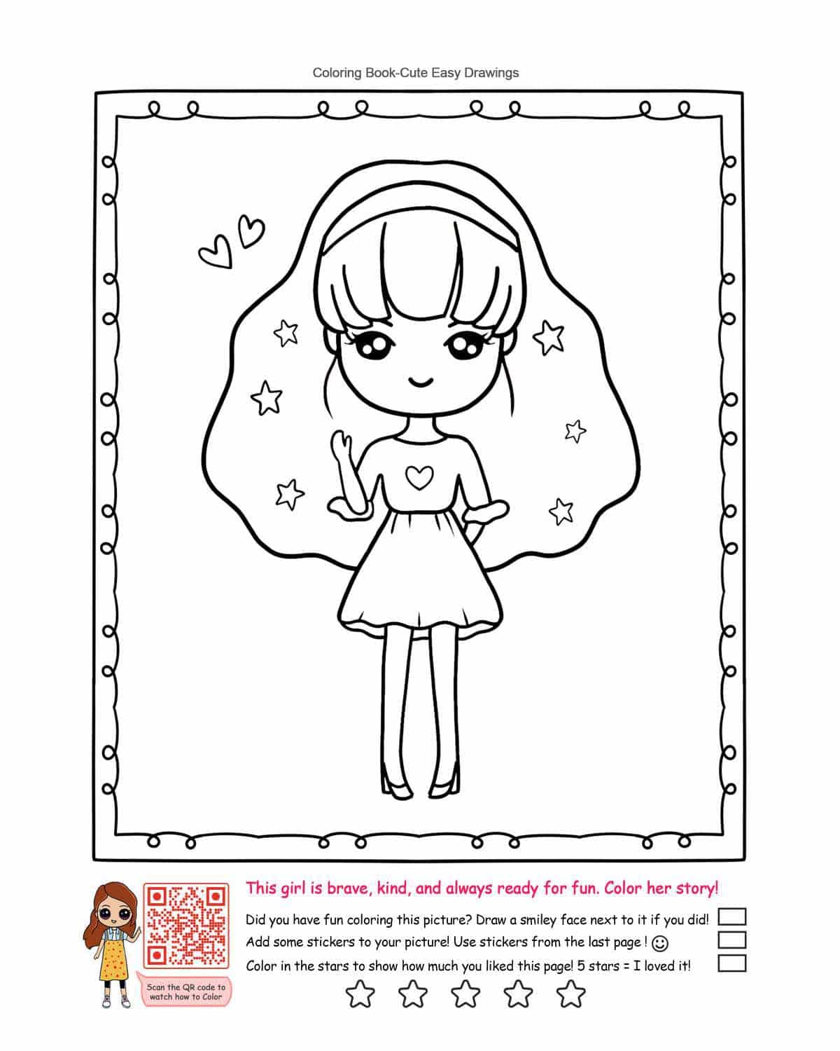 Q: What does the “Adorable Girl with Stars” coloring page feature?